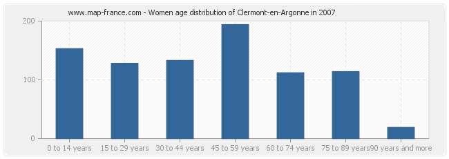 - Clermont-en-Argonne women inhabitants from 45 to 59 years : 194