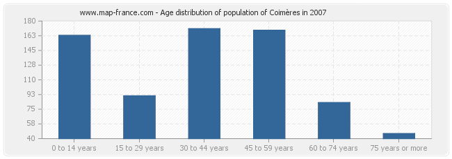 - Population of Coimères from 0 to 14 years : 163 inhabitants