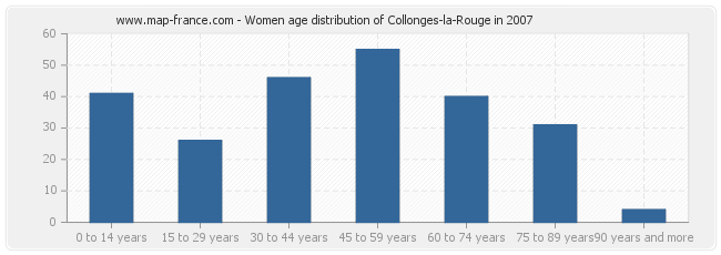 - Collonges-la-Rouge women inhabitants from 45 to 59 years : 55