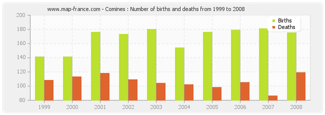 Population of Comines was 12 208 inhabitants in 2007, 11 945 inhabitants in 1999, 11 320 inhabitants in 1990, 10 915 inhabitants in 1982, 10 485 inhabitants in 1975 and 10 128 inhabitants in 1968.