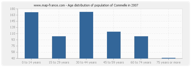 - Population of Commelle from 30 to 44 years : 171 inhabitants