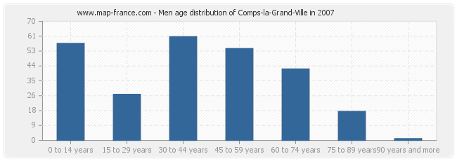 - Comps-la-Grand-Ville men inhabitants from 30 to 44 years : 61