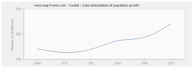 This curve shows the history of the population of Condat from 1968 to 2007 in cubic interpolation. This provides more precisely the population of the municipality of Condat the years where no census has been taken.