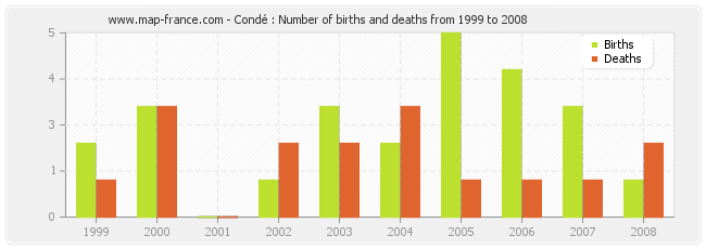 This curve shows the history of the population of Condé from 1968 to 2007 in cubic interpolation. This provides more precisely the population of the municipality of Condé the years where no census has been taken.