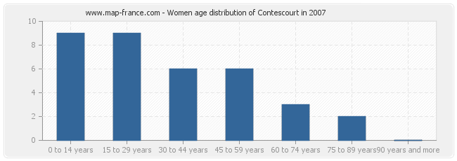 - Contescourt women inhabitants from 15 to 29 years : 9