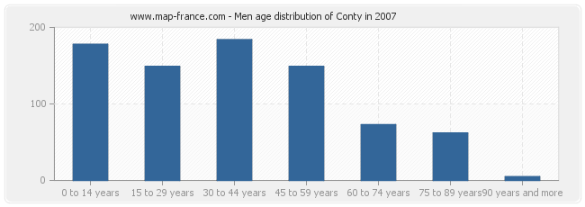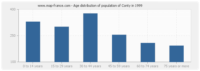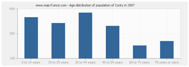 - Population of Conty from 30 to 44 years : 376 inhabitants