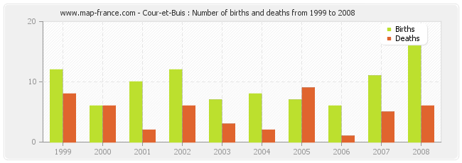 Cour-et-Buis : births and deaths from 1999 to 2008