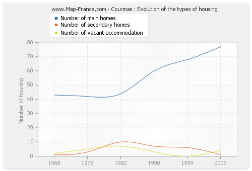 The number of housing of Courmas was 82 in 2007, 74 in 1999, 70 in 1990, 61 in 1982, 50 in 1975 and 46 in 1968.