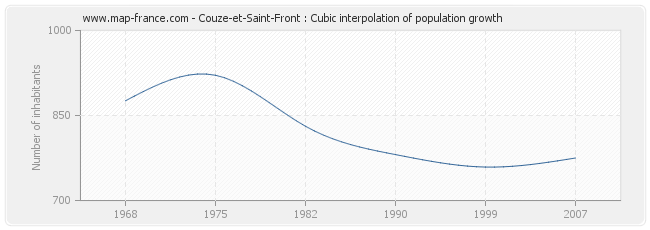 This curve shows the history of the population of Couze-et-Saint-Front from 1968 to 2007 in cubic interpolation. This provides more precisely the population of the municipality of Couze-et-Saint-Front the years where no census has been taken.