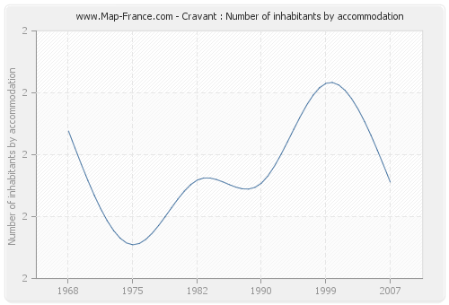 The population of Cravant was 810 inhabitants in 2007, 824 inhabitants in 1999, 794 inhabitants in 1990, 756 inhabitants in 1982, 748 inhabitants in 1975 and 755 inhabitants in 1968. Meanwhile, the number of housing of Cravant was 478 in 2007, 435 in 1999, 469 in 1990, 445 in 1982, 477 in 1975 and 420 in 1968.
