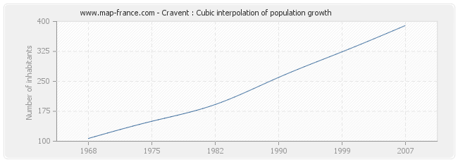 This curve shows the history of the population of Cravent from 1968 to 2007 in cubic interpolation. This provides more precisely the population of the municipality of Cravent the years where no census has been taken.