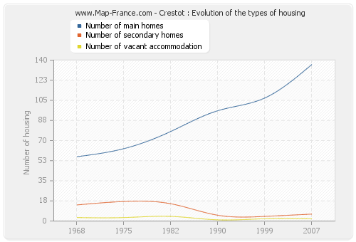 The number of housing of Crestot was 145 in 2007, 113 in 1999, 102 in 1990, 97 in 1982, 83 in 1975 and 73 in 1968.