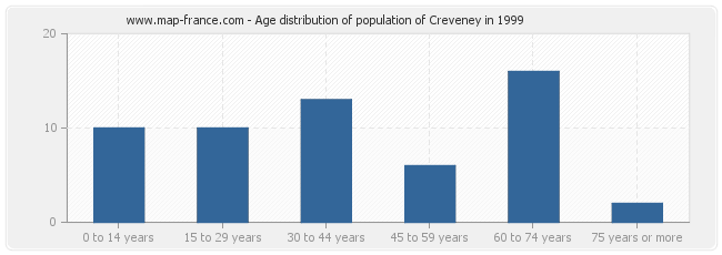 - Population of Creveney from 60 to 74 years : 16 inhabitants
