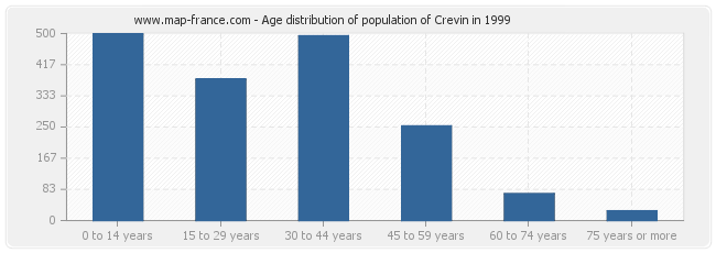 - Population of Crevin from 0 to 14 years : 499 inhabitants