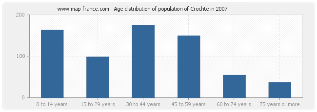 - Population of Crochte from 30 to 44 years : 175 inhabitants
