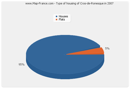 In 2007 the accommodations of Cros-de-Ronesque consisted of 61 main homes, 54 second homes and 11 vacant accommodations.