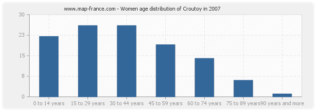 - Croutoy women inhabitants from 15 to 29 years : 26