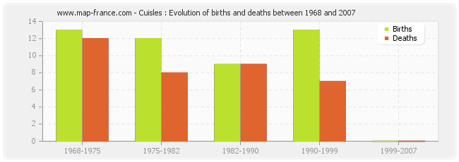Cuisles : evolution of births and deaths from 1968 to 2007