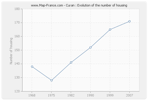 The number of housing of Curan was 171 in 2007, 165 in 1999, 152 in 1990, 141 in 1982, 128 in 1975 and 138 in 1968.