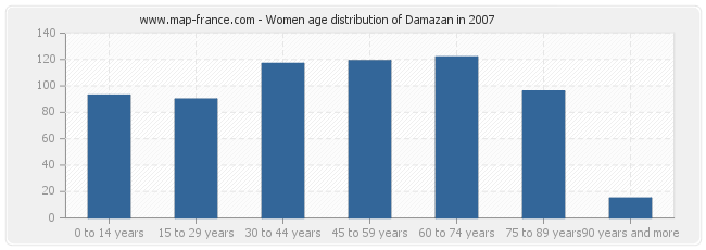 - Population of Damazan from 75 years or more : 174 inhabitants