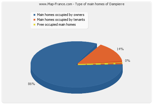- Number of main homes of Dampierre occupied by owners : 109 - Number of main homes of Dampierre occupied by tenants : 18 - Number of main homes of Dampierre occupied free of charge : 0 |