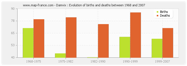 - From 1999 and 2007 : 59 births and 70 deaths.