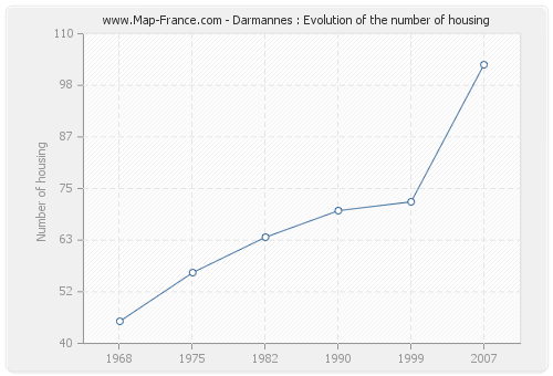 The number of housing of Darmannes was 103 in 2007, 72 in 1999, 70 in 1990, 64 in 1982, 56 in 1975 and 45 in 1968.