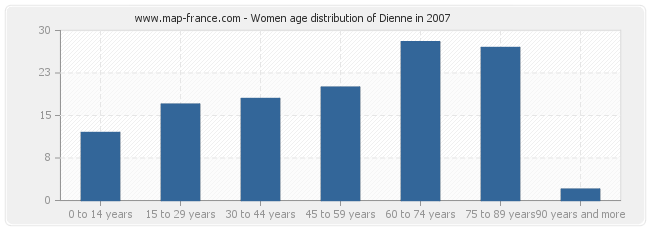 - Dienne women inhabitants from 75 to 90 years : 27