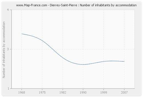 The population of Dierrey-Saint-Pierre was 187 inhabitants in 2007, 181 inhabitants in 1999, 165 inhabitants in 1990, 187 inhabitants in 1982, 192 inhabitants in 1975 and 219 inhabitants in 1968. Meanwhile, the number of housing of Dierrey-Saint-Pierre was 92 in 2007, 89 in 1999, 86 in 1990, 86 in 1982, 68 in 1975 and 71 in 1968.