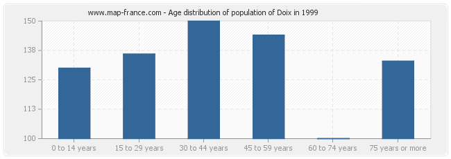 - Population of Doix from 60 to 74 years : 100 inhabitants