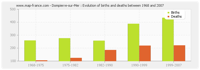 Dompierre-sur-Mer : evolution of births and deaths from 1968 to 2007