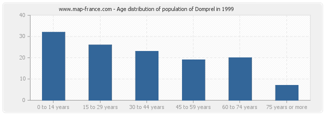 - Population of Domprel from 0 to 14 years : 32 inhabitants