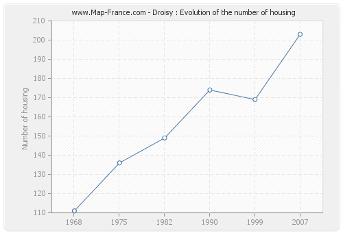 The number of housing of Droisy was 203 in 2007, 169 in 1999, 174 in 1990, 149 in 1982, 136 in 1975 and 111 in 1968.