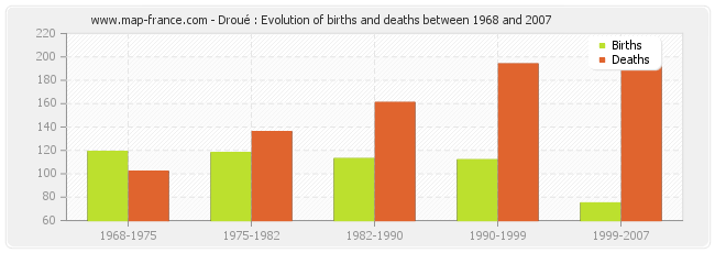 - Population of Droué from 60 to 74 years : 209 inhabitants