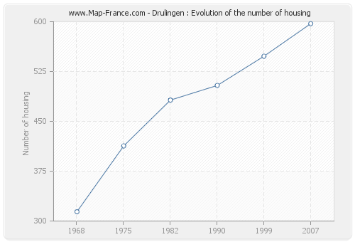 The number of housing of Drulingen was 597 in 2007, 548 in 1999, 504 in 1990, 482 in 1982, 413 in 1975 and 314 in 1968.