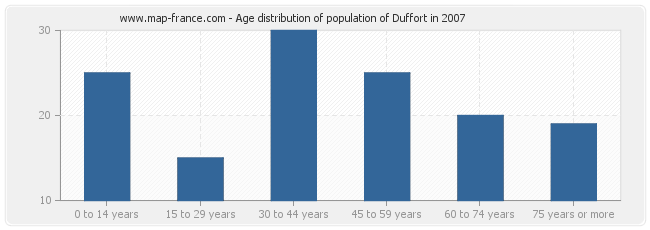 - Population of Duffort from 30 to 44 years : 30 inhabitants