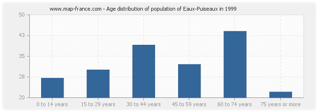 Distribution of the population of Eaux-Puiseaux by age in 1999 :