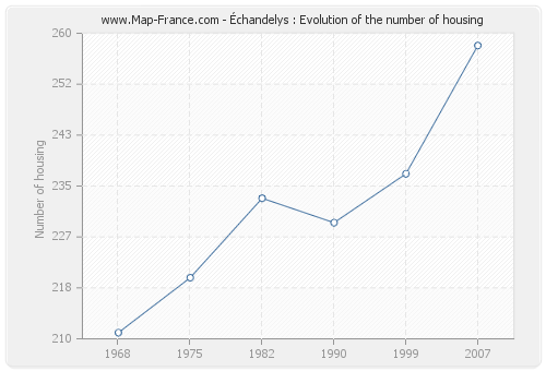 The number of housing of Échandelys was 258 in 2007, 237 in 1999, 229 in 1990, 233 in 1982, 220 in 1975 and 211 in 1968.