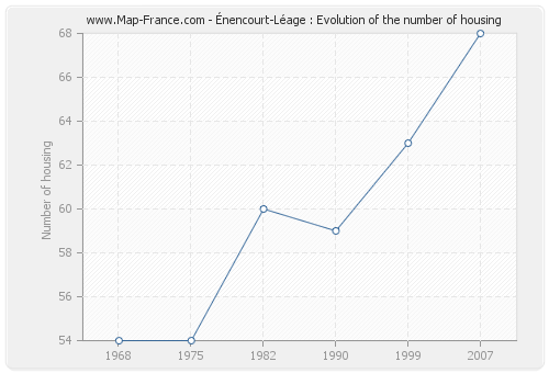 The number of housing of Énencourt-Léage was 68 in 2007, 63 in 1999, 59 in 1990, 60 in 1982, 54 in 1975 and 54 in 1968.