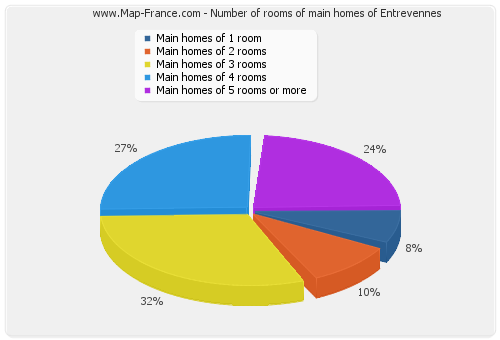 - Number of main homes of Entrevennes of 1 room : 6 - Number of main homes of Entrevennes of 2 rooms : 8 - Number of main homes of Entrevennes of 3 rooms : 25 - Number of main homes of Entrevennes of 4 rooms : 25 - Number of main homes of Entrevennes of 5 rooms and more : 19 |