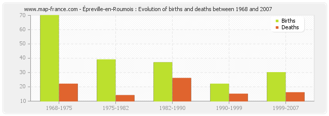 Épreville-en-Roumois : evolution of births and deaths from 1968 to 2007