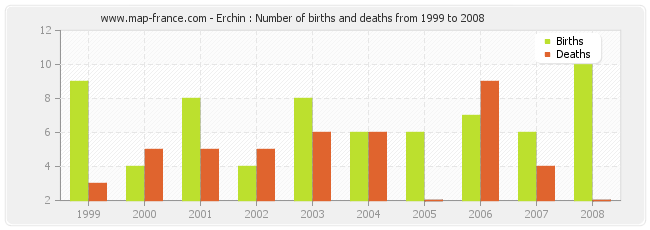 Population of Erchin was 735 inhabitants in 2007, 780 inhabitants in 1999, 810 inhabitants in 1990, 653 inhabitants in 1982, 630 inhabitants in 1975 and 644 inhabitants in 1968.