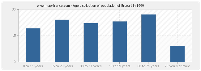 - Population of Ercourt from 60 to 74 years : 27 inhabitants