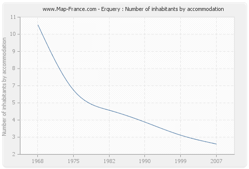 The number of inhabitants of Erquery per housing was 2,68 in 2007.