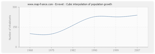 This curve shows the history of the population of Errevet from 1968 to 2007 in cubic interpolation. This provides more precisely the population of the municipality of Errevet the years where no census has been taken.