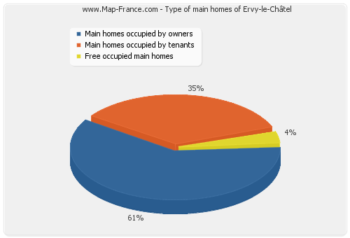 - Number of main homes of Ervy-le-Châtel occupied by owners : 298 - Number of main homes of Ervy-le-Châtel occupied by tenants : 169 - Number of main homes of Ervy-le-Châtel occupied free of charge : 18 |
