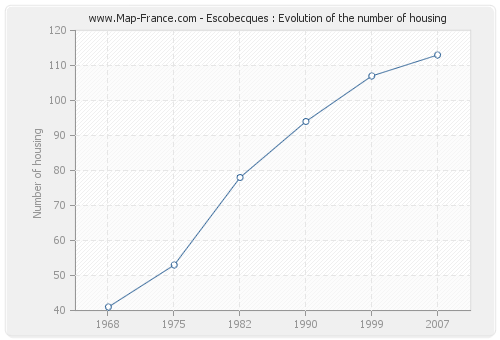 The number of housing of Escobecques was 113 in 2007, 107 in 1999, 94 in 1990, 78 in 1982, 53 in 1975 and 41 in 1968.