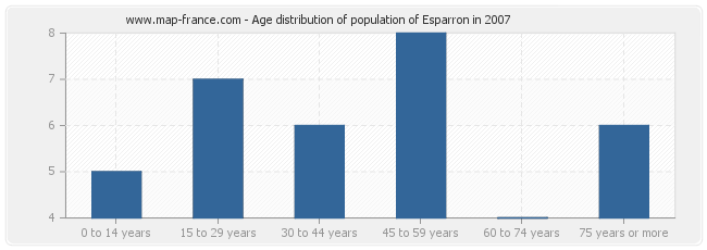 - Population of Esparron from 45 to 59 years : 7 inhabitants