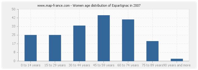 - Espartignac women inhabitants from 45 to 59 years : 44