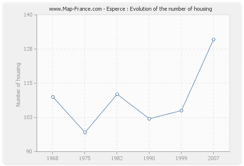The number of housing of Esperce was 131 in 2007, 105 in 1999, 102 in 1990, 111 in 1982, 97 in 1975 and 110 in 1968.